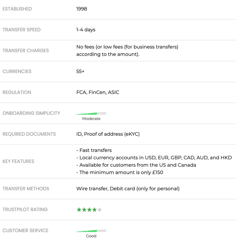 To send money over the board, to pay suppliers, to purchase goods and services, as well as to receive the revenues through the creation of a simple bank account, in the own local currency — all that is easy, fast and effective with OFX, with the assistance of their praised customer support team. Definitely, a great service worth being in one’s shortlist.